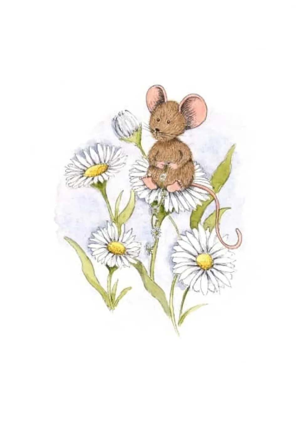 Anillustration Ansichtkaart Muisje op Madeliefjes