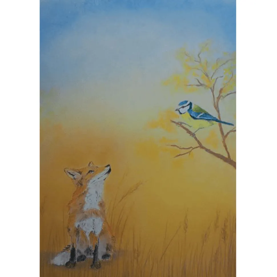 Brechtje Duijzer Ansichtkaart Vos en Pimpelmees