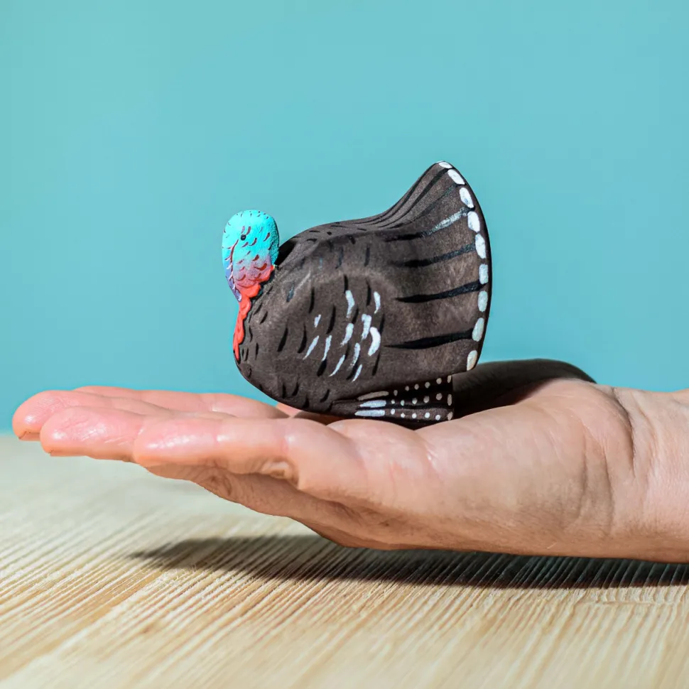 Deze kalkoen van Bumbu is handgemaakt en ongeveer 7.5x8x6 cm groot.