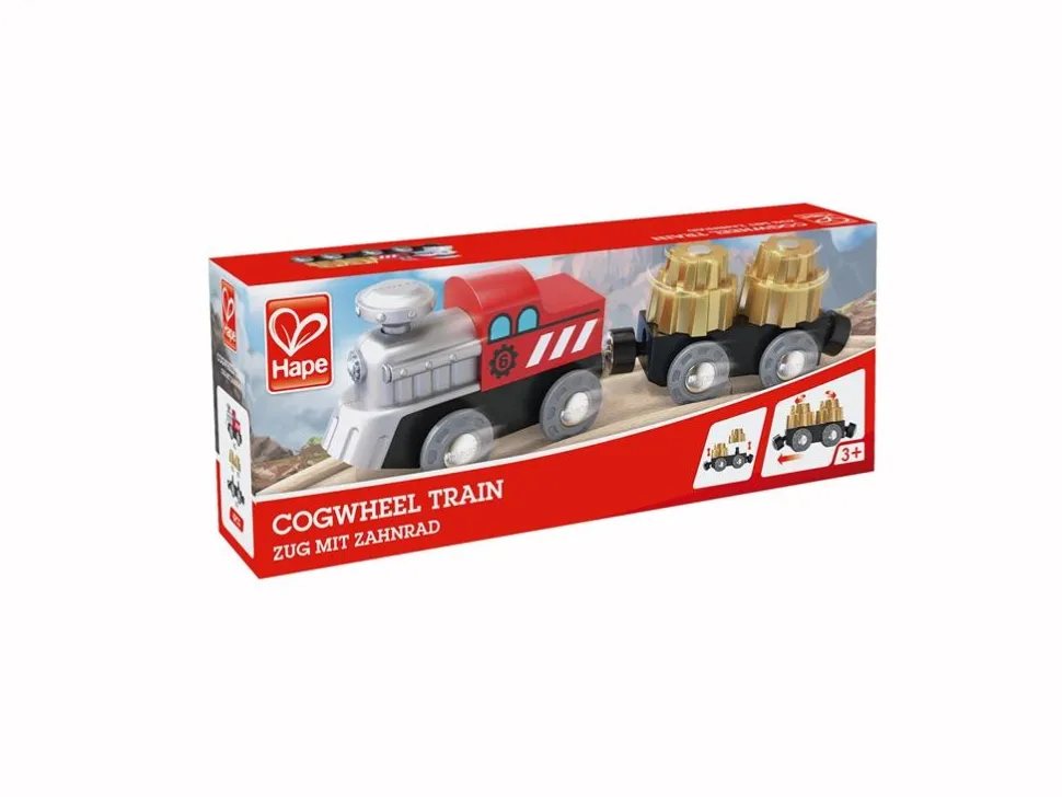 Duw deze trein over het spoor en de tandwielen op de wagon draaien vrolijk rond voor een dynamische speelervaring! De twee tandwielsets kunnen er worden afgehaald om spelenderwijs te laden en te lossen.