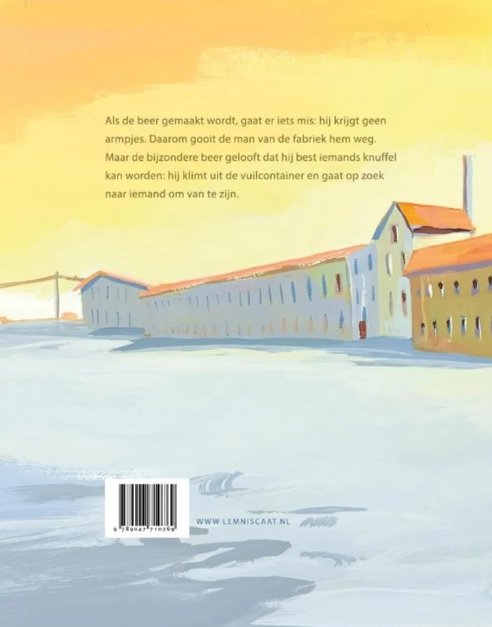 Hoe een bijzondere beer een thuis vindt Toen de beer gemaakt werd, was er veel te zien. De beer keek om zich heen en zat scheef. Zo werd hij een bijzondere beer. ‘Jij bent niet goed,’ zei een man van de fabriek. ‘Jou wil niemand hebben.’