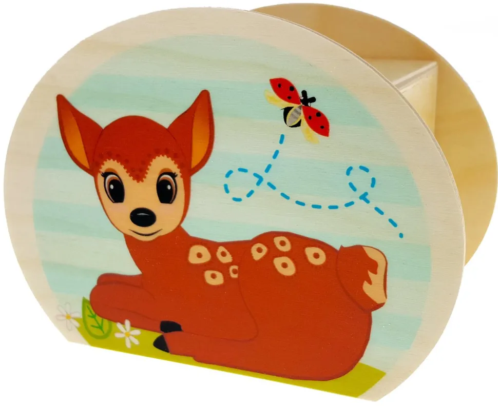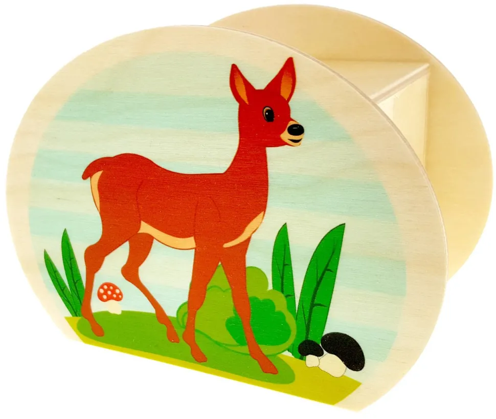 Een spaarpot die met de hand gemaakt is van hout. Deze spaarpot van Hess heeft een lief liggend ree aan de ene zijde en aan de andere zijde staat ze fier rechtop als motief. Leuk om te geven of te ontvangen.