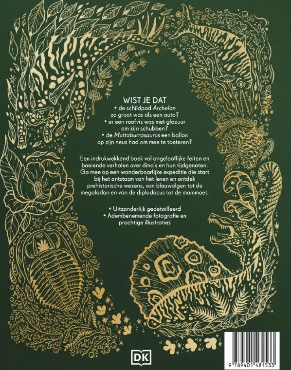 Een indrukwekkend boek vol ongelooflijke feiten en boeiende verhalen over dino's en hun tijdgenoten. Ga mee op een wonderbaarlijke expeditie die start bij het ontstaan van het leven en ontdek prehistorische wezens, van blauwalgen tot de megalodon en