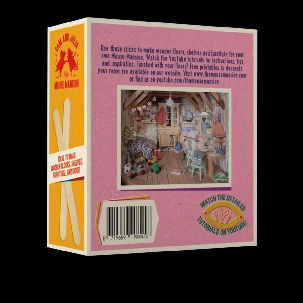 Met de ijscostokjes kun je je Muizenhuis nog gedetailleerder uitbouwen. Er zitten maar liefst 200 stokjes in het doosje, dus dat scheelt een hoop ijsjes eten!