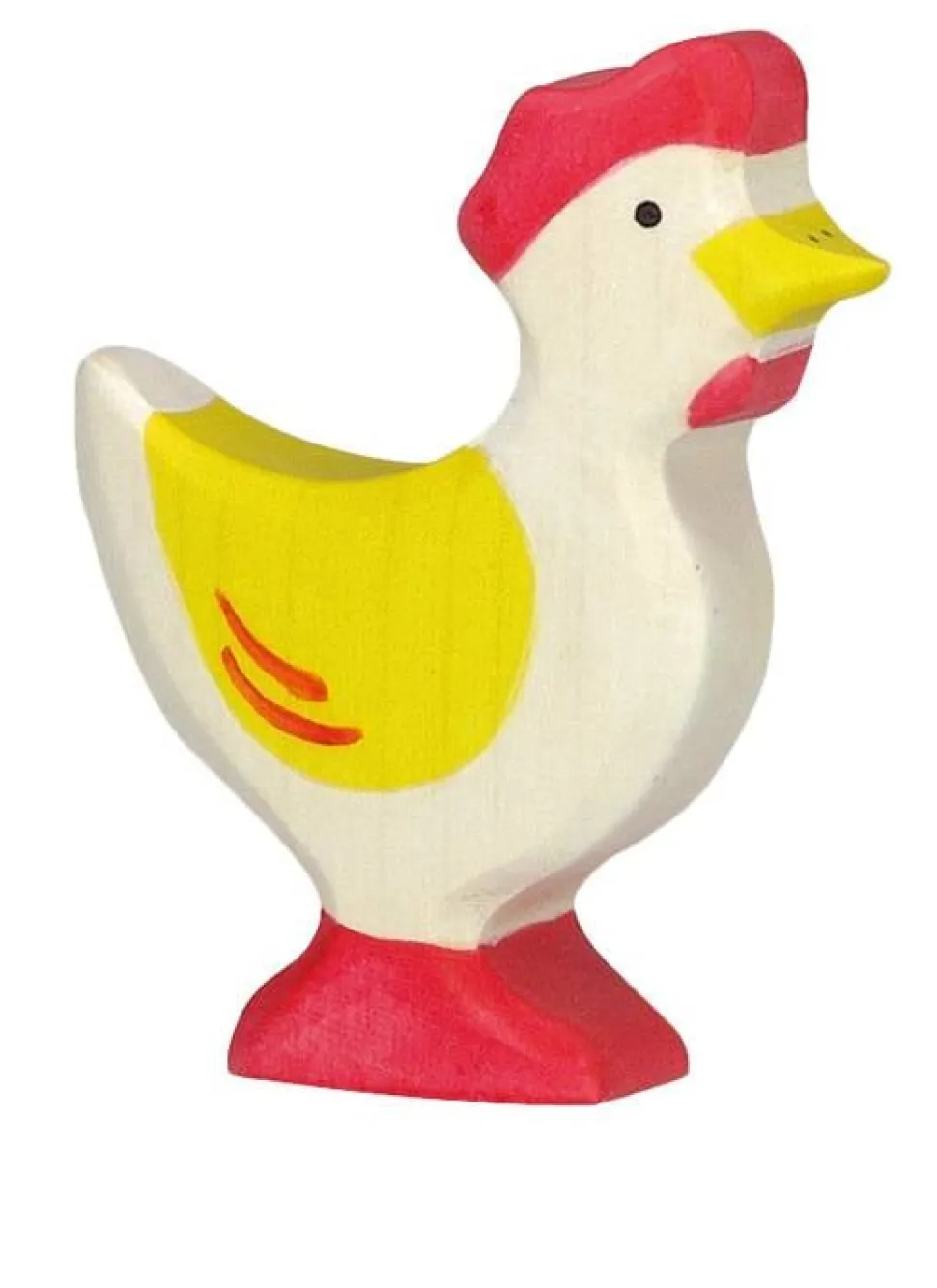 Maak je eigen boerderij en daar mag deze kip niet in ontbreken. Deze kip van Holztiger heeft zijn hoofdje iets omhoog gericht. Afmeting: 5.5×1.9×7 cm