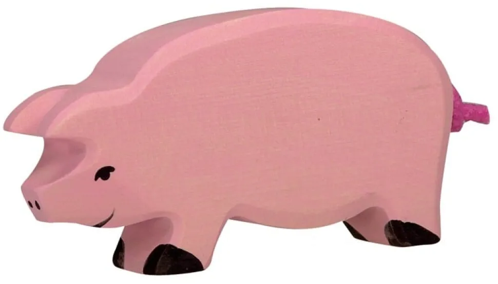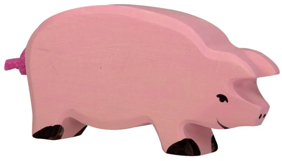 Maak je eigen boerderij met de houten dieren en figuren van Holztiger, daar mag dit varken niet in ontbreken. Afmeting: 13×2.8×6.5 cm