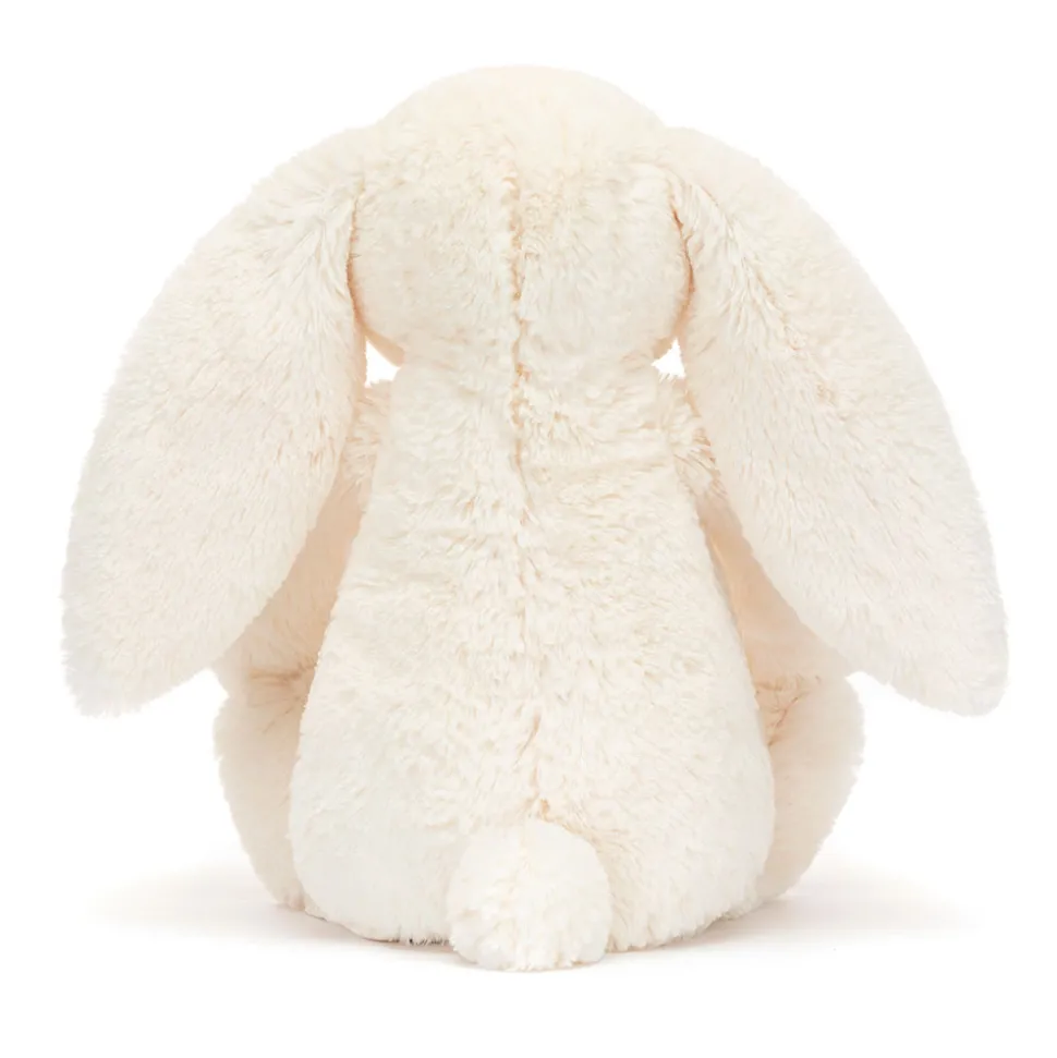 Blossom Cream Bunny is bessen aan het plukken in de velden. In de iconische crèmekleurige Bashful-vacht heeft Blossom Cream Bunny zachte katoenen oren en voeten, bedrukt met een origineel Jellycat-ontwerp. Afmeting: 31cm x 12cm x 9cm, zithoogte: 23cm