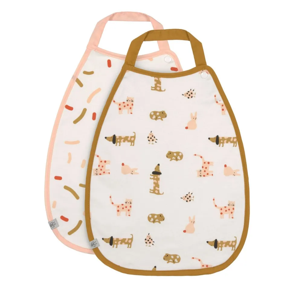 Met de extra grote, waterdichte slabbetjes in een set van 2 Spicy Orange kunnen de kleintjes zonder spijt morsen – tijdens het eten, schilderen of knutselen. Het aangename katoengehalte (biologisch) is gemakkelijk te onderhouden.