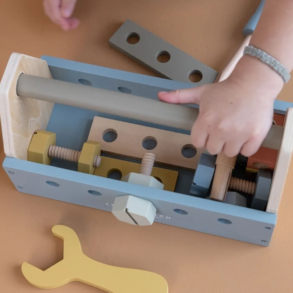 Help mee met alle klusjes in huis! Met behulp van deze handige toolbox van Little Dutch kan alles worden gemaakt. Met je eigen hamer, schroevendraaier en moersleutel heb je alle gereedschappen