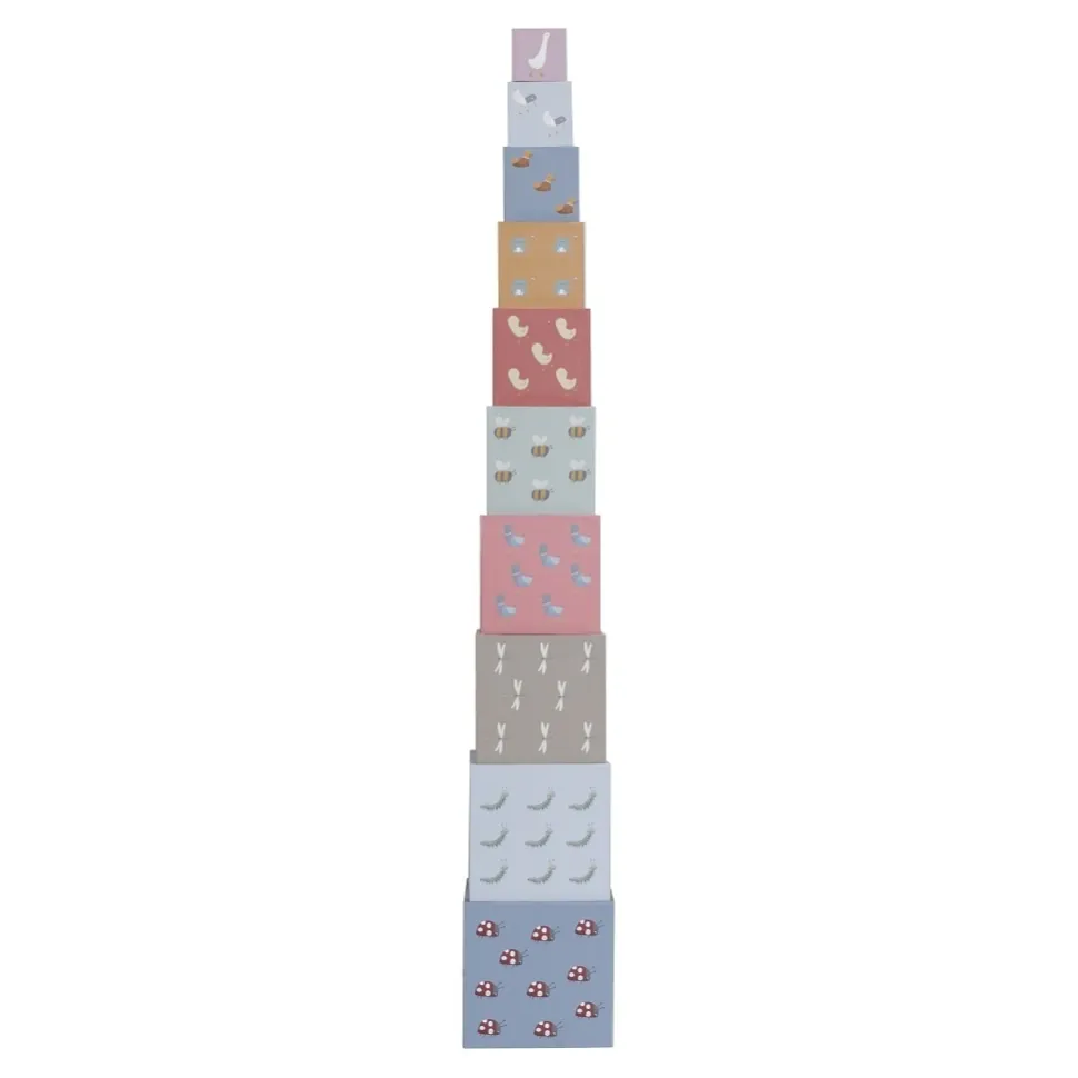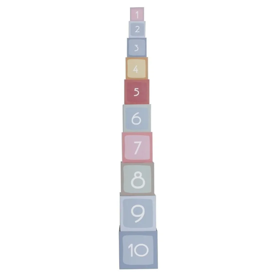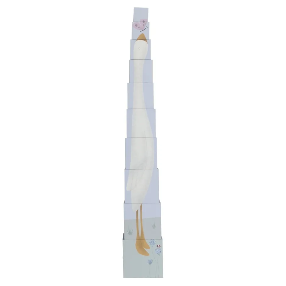Kinderen leren spelenderwijs tot 10 te tellen met deze blokkentoren van Little Dutch. De blokken zijn geïllustreerd met de herkenbare Gans en al zijn vriendjes die rond de vijver op het platteland wonen.