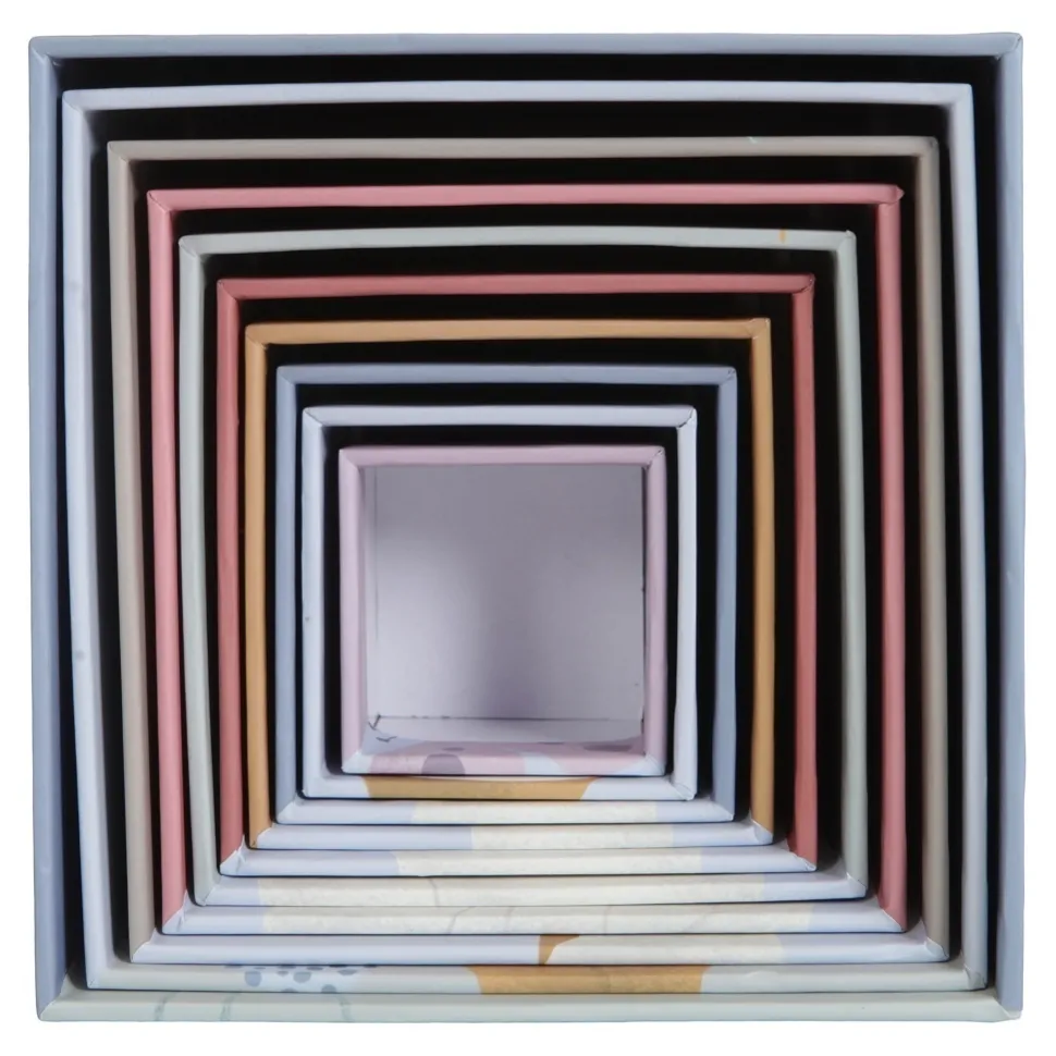 Je kunt de blokken op elkaar zetten en een hoge toren maken of horizontaal op de grond leggen om de verschillende groottes te ontdekken.