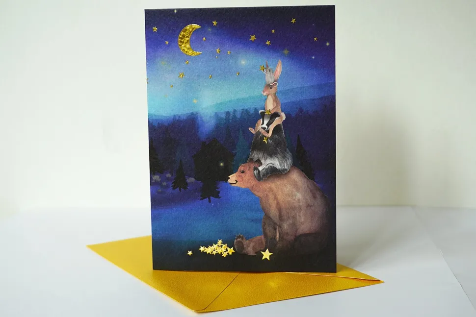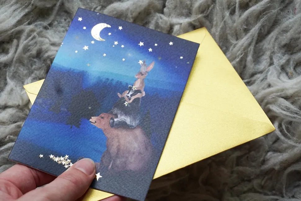 Lotte Drouen Wenskaart met Foliedruk Sterren Ophangen