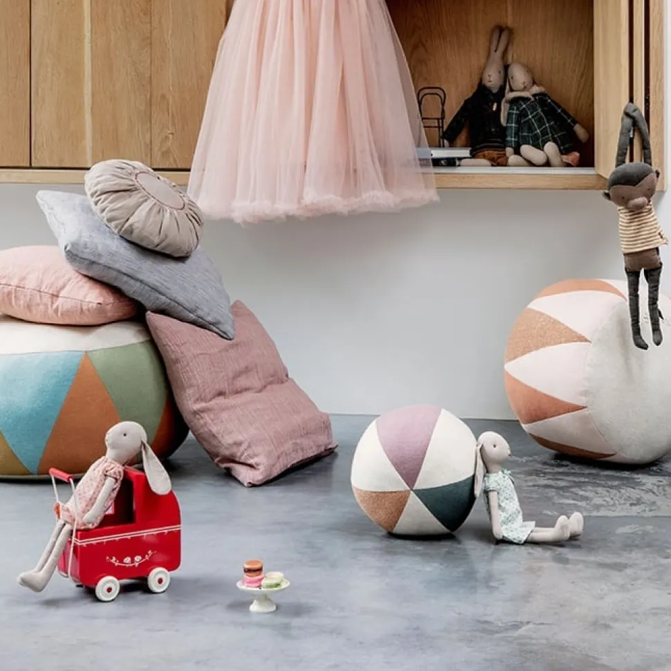 Zachte bal van Maileg gemaakt van katoen, gevuld met gerecycled polyester. Perfect om kleine handen te leren spelen.