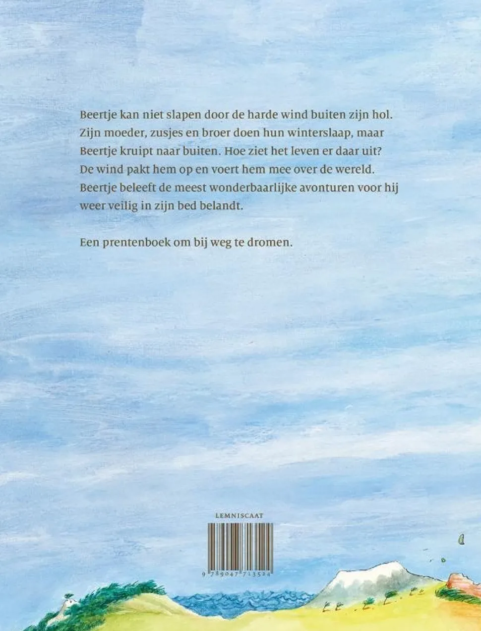 De wind pakt hem op en voert hem mee over de wereld. Beertje beleeft de meest wonderbaarlijke avonturen voor hij weer veilig in zijn bed belandt. Een prentenboek om bij weg te dromen.