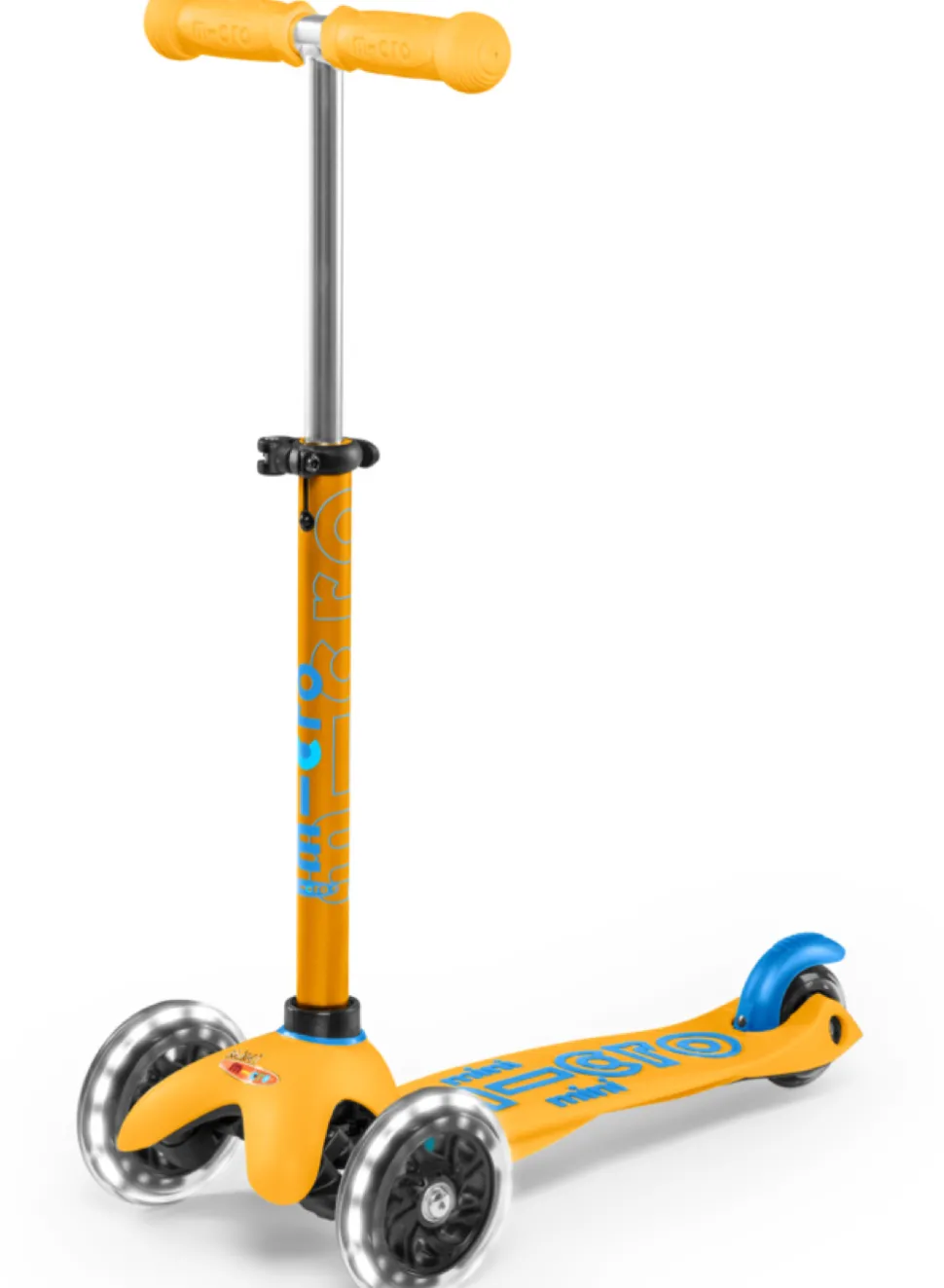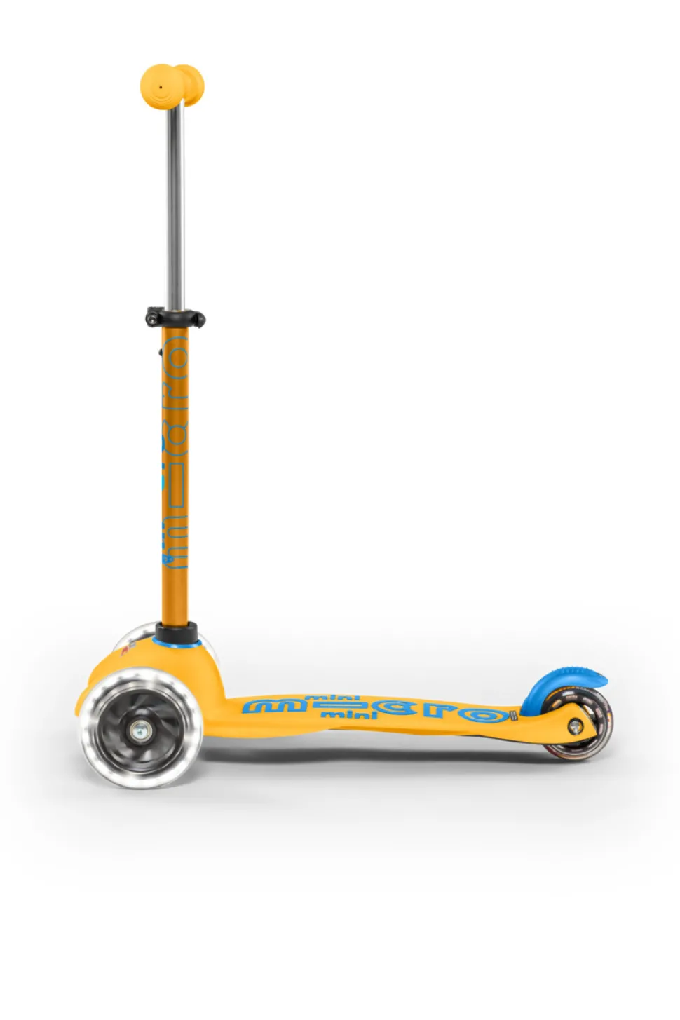 Deze donkergele Mini Micro Deluxe LED is extra veilig door zijn witte LED lampjes, zodat je kind 's avonds beter zichtbaar is. Kinderen vinden de lampjes natuurlijk vooral heel erg cool.