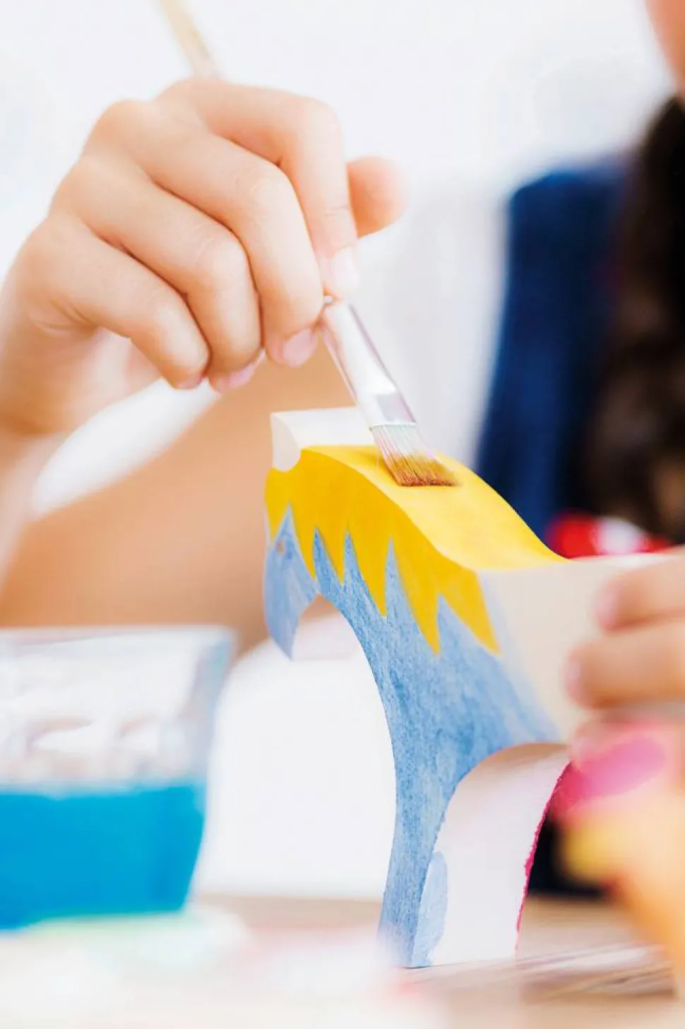 Je kunt eerst de scherpe randjes met een schuurpapiertje glad maken. Daarna kun je naar eigen inzicht de dieren gaan verven. Op deze manier heb je een uniek dier gemaakt. Niemand heeft zo’n zelfgemaakt dier. De hoogte van de koe is 12.5 cm.