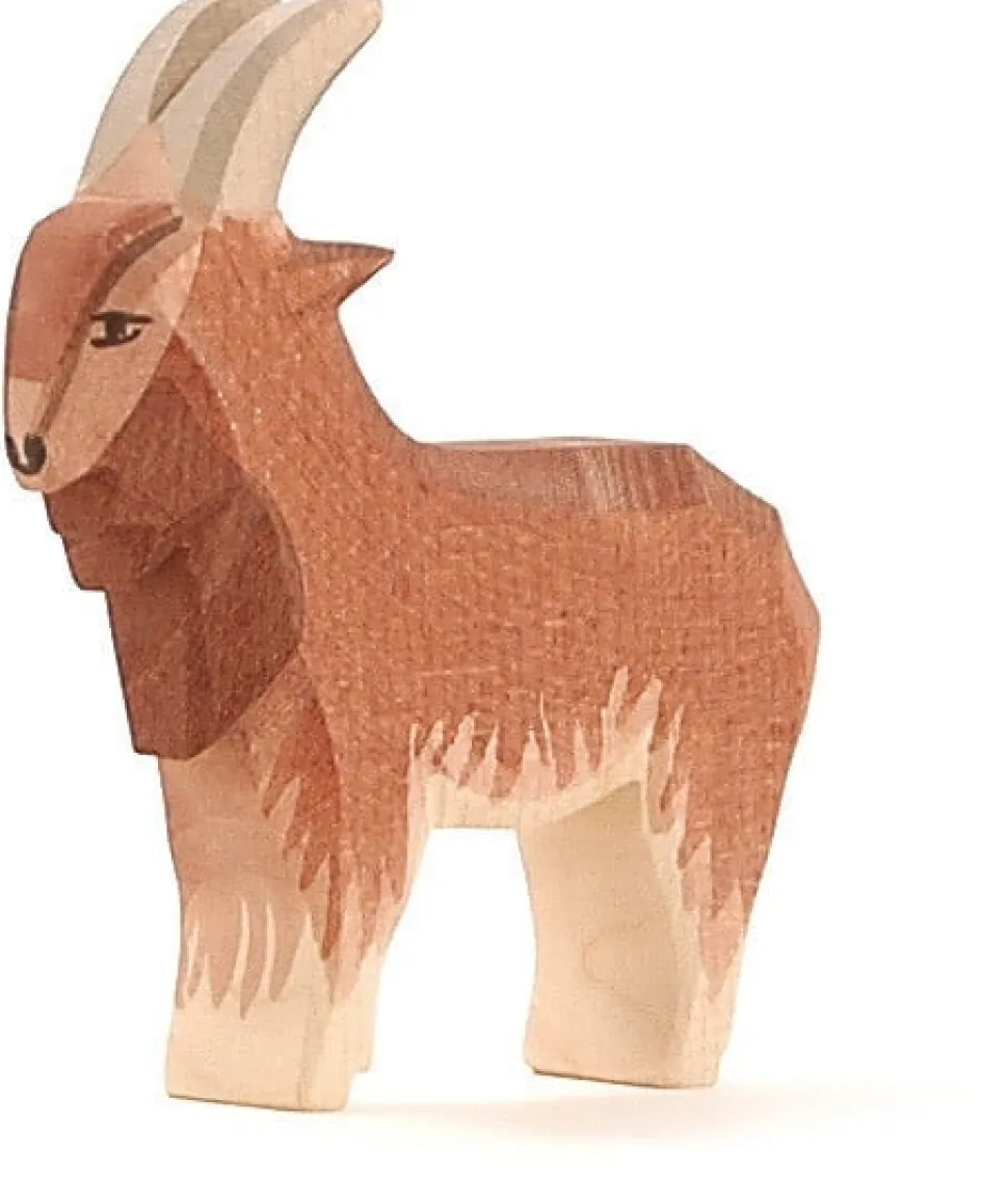 Deze bok van Ostheimer staat rechtop.Met dehand vanhout gemaakt en beschilderd. Hoogte: 10.5cm