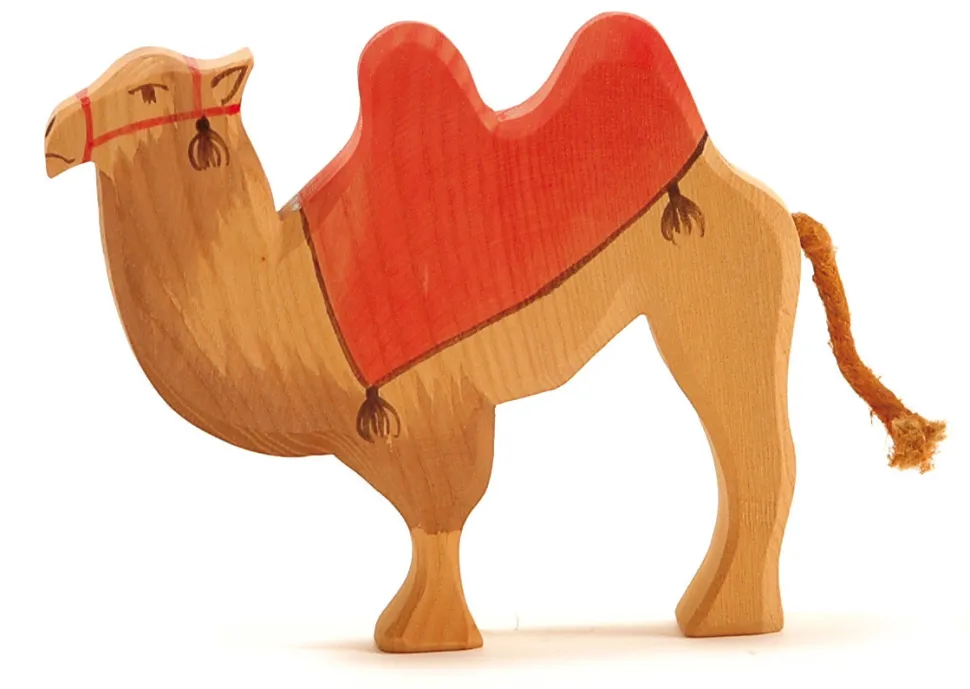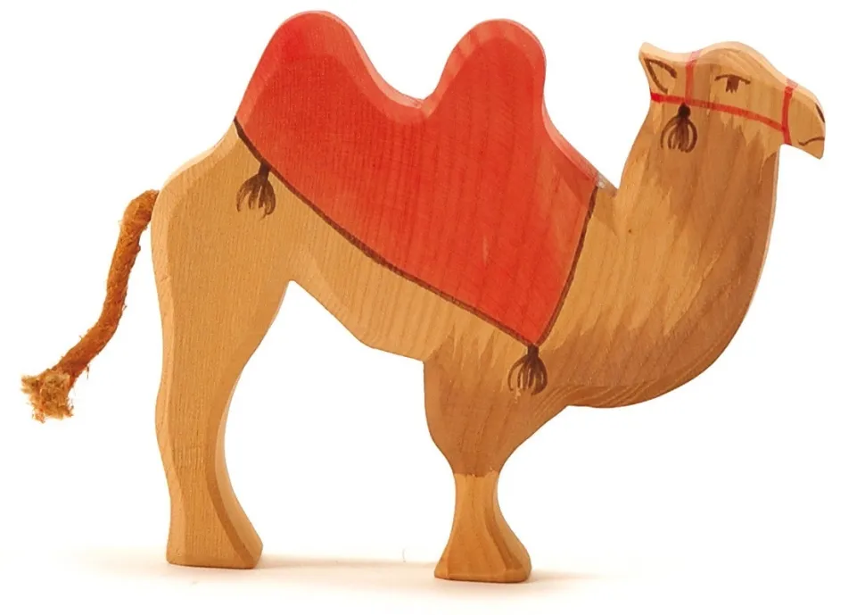 Deze kameel kijkt recht voor zich uit en is voorzien van een getekend zadel. Past bij de kerststalfiguren van Ostheimer. Hoogte:13cm