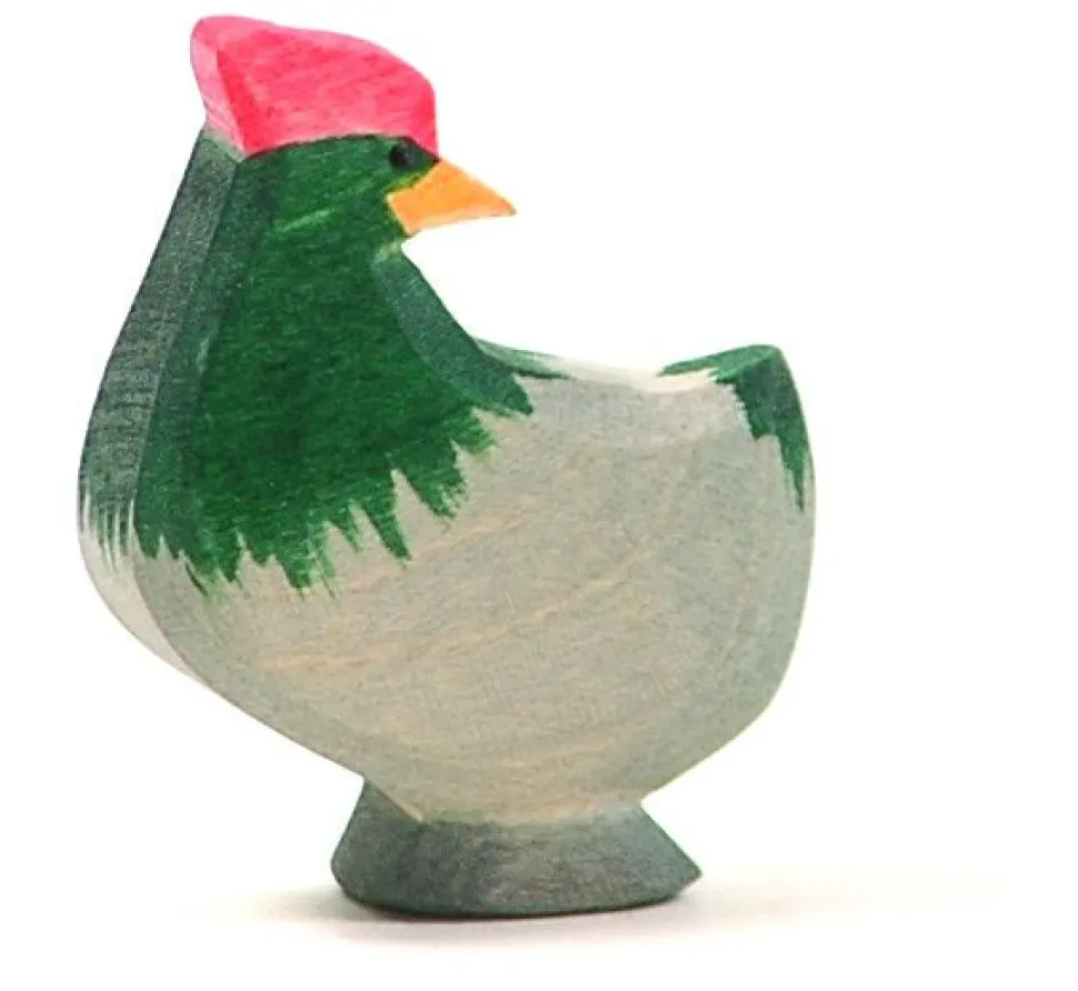 Deze kip heeft zijn kop omgedraaid en kijkt naar achteren. Hoogte 5 cm