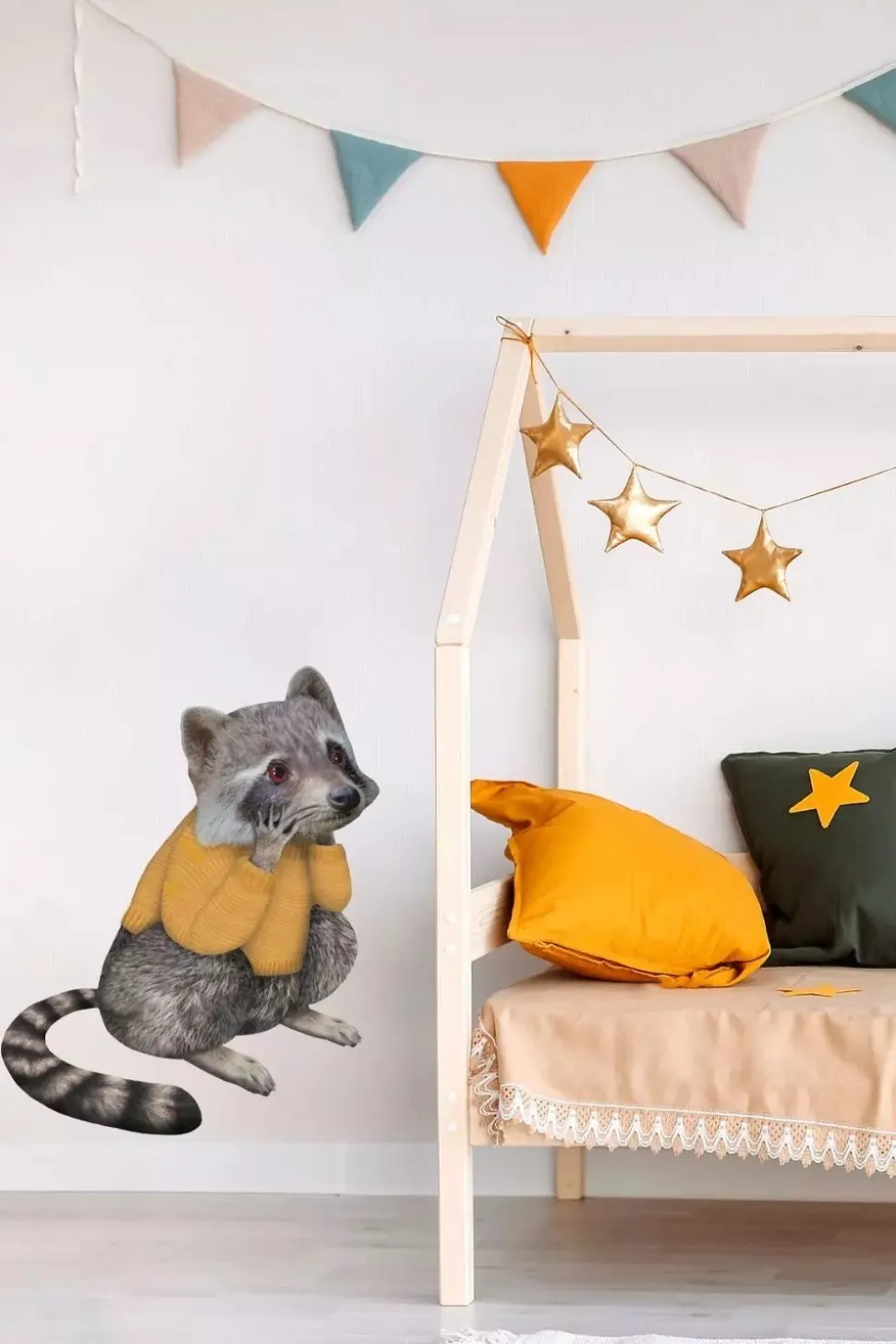 Sticky Tales Muursticker Wasbeer met Trui