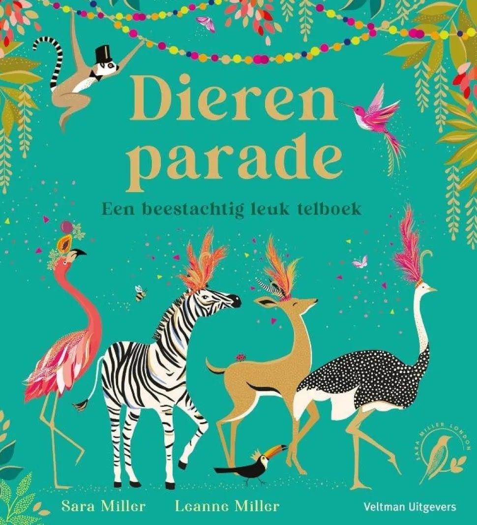 Dit is de DIERENPARADE! Doe je mee? Geschreven door Leanne Miller en geïllustreerd door haar zus, Sara Miller, oprichter van het bekroonde lifestylemerk Sara Miller London.