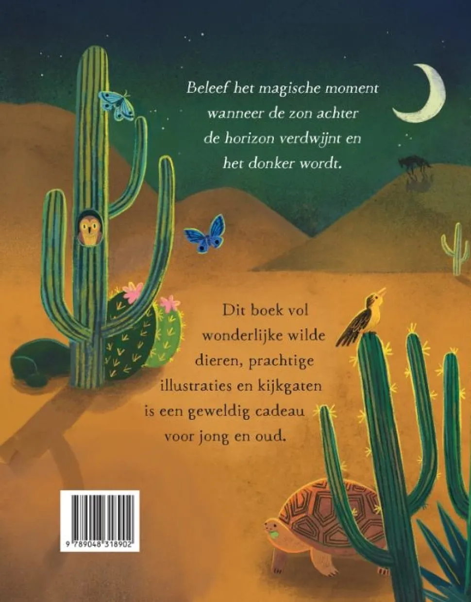 Beleef het magische moment wanneer de zon achter de horizon verdwijnt en het donker wordt. Dit boek vol wonderlijke wilde dieren, prachtige illustraties en kijkgaten is een geweldig cadeau voor jong en oud.