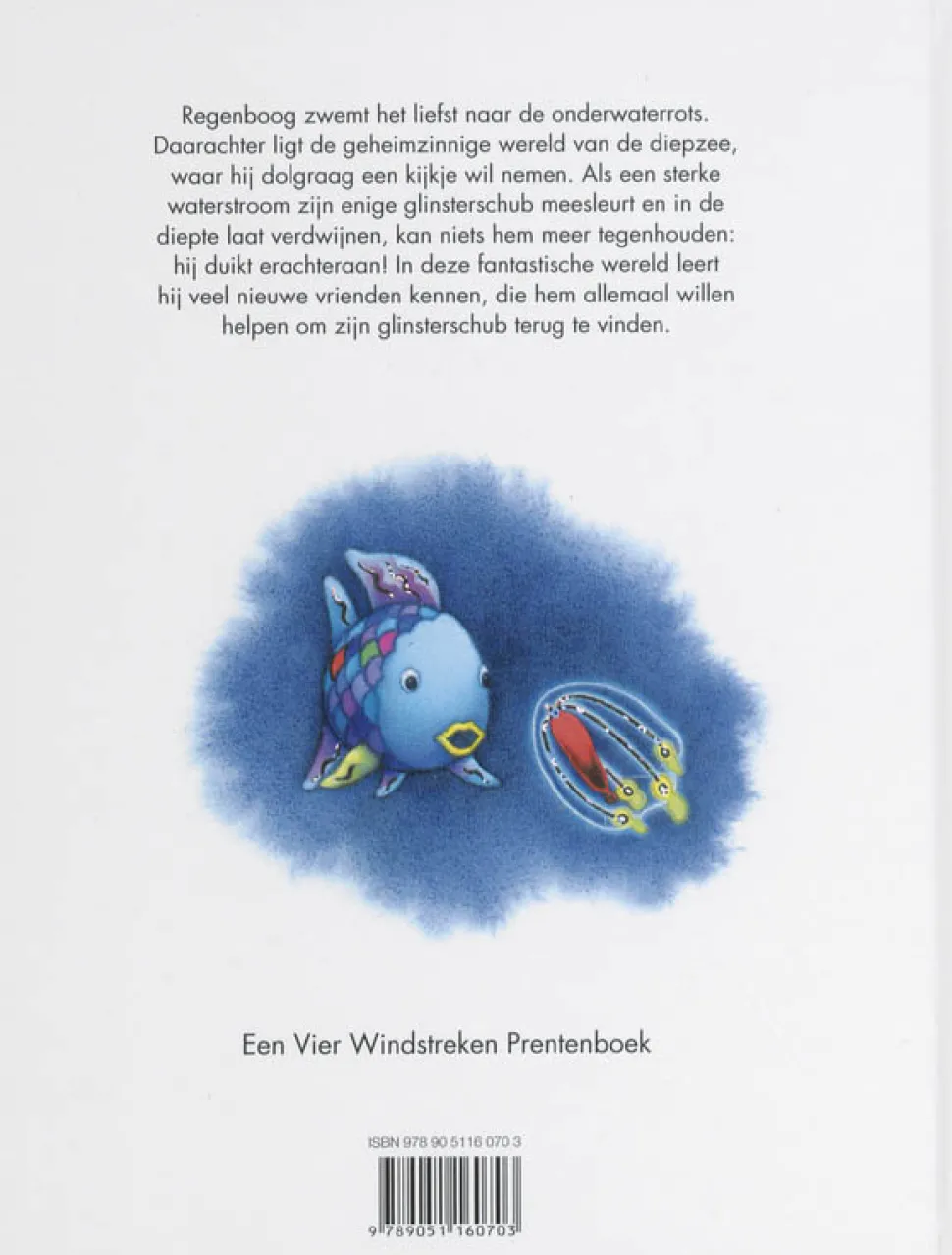 Regenboog maakt op zijn tocht in de diepte veel nieuwe vrienden en van een van hen krijgt hij zelfs een heel nieuw glitterpak. Toch is hij pas echt blij als hij zijn eigen glinsterschub weer heeft teruggevonden.