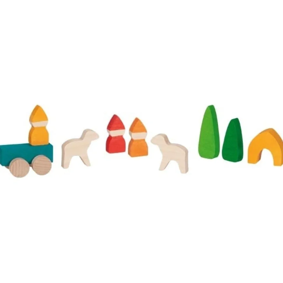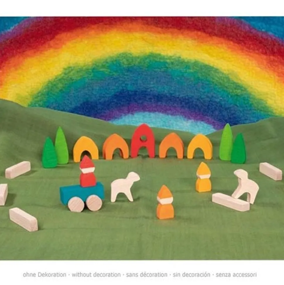 De 25 houten bouwstenen vormen een klein geheel dorp en toch laten ze ruimte over voor dat van het kind verbeelding. De felle kleuren verbergen het hout niet, maar laat de structuur zien. Geschikt voor kinderen vanaf 3 jaar. Made in Europe.