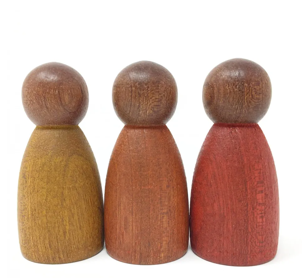 Deze set bestaat uit 3 bruin gekleurde houten poppetjes.