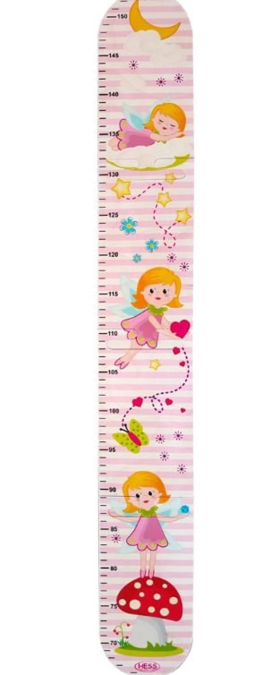 Kijken hoe groot je bent? Dan kan gemakkelijk met deze groeimeter. Op deze groeimeter staat een fee afgebeeld die op een paddenstoel staat, een dutje doet op een wolk en een hartje vangt.