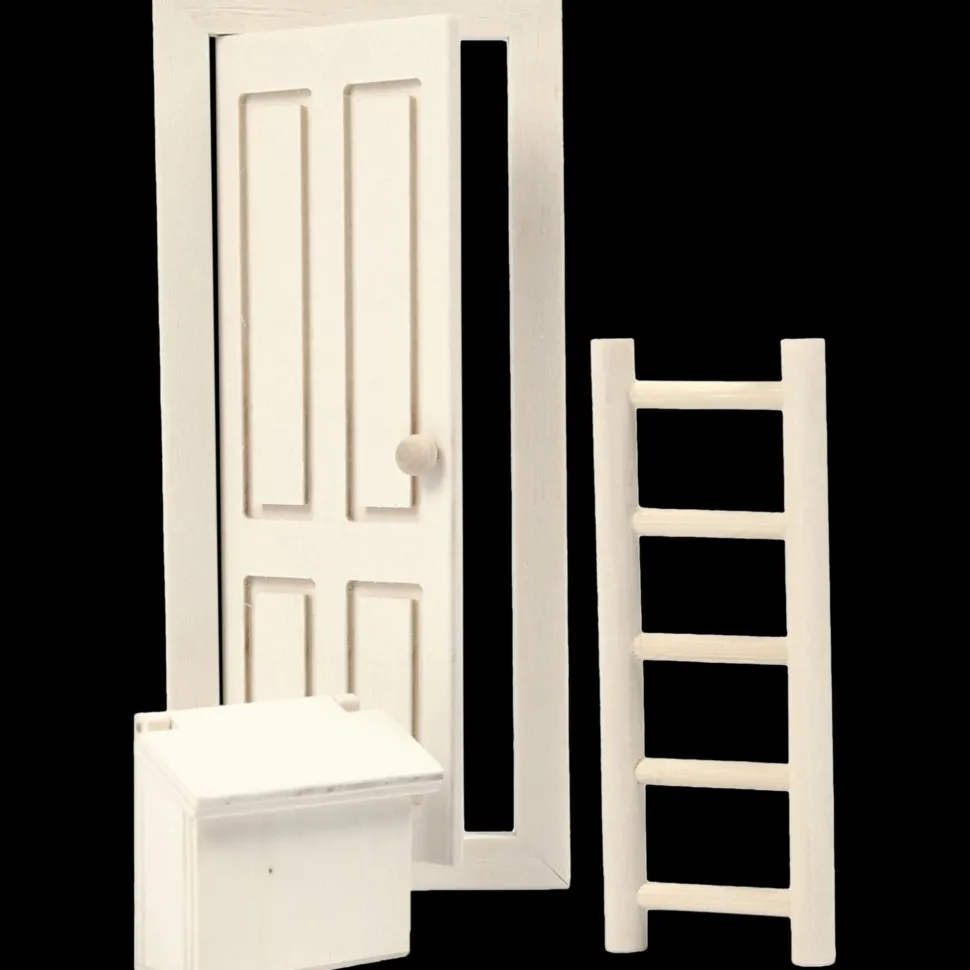Verf het deurtje en gebruik de printjes van het knipvelletje om je deurtje te versieren. Op welk nummer zouden muizen wonen? Plak het deurtje en de brievenbus op de plint en plaats het laddertje erbij. Wie weet hebben de muizen morgen wel post!