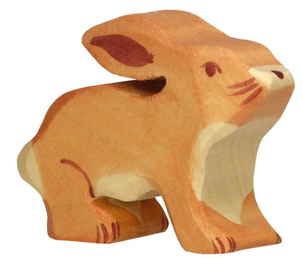 Deze haas van Holztiger zit rechtop en kijkt omhoog. Afmeting: 5.5×1.9×4 cm