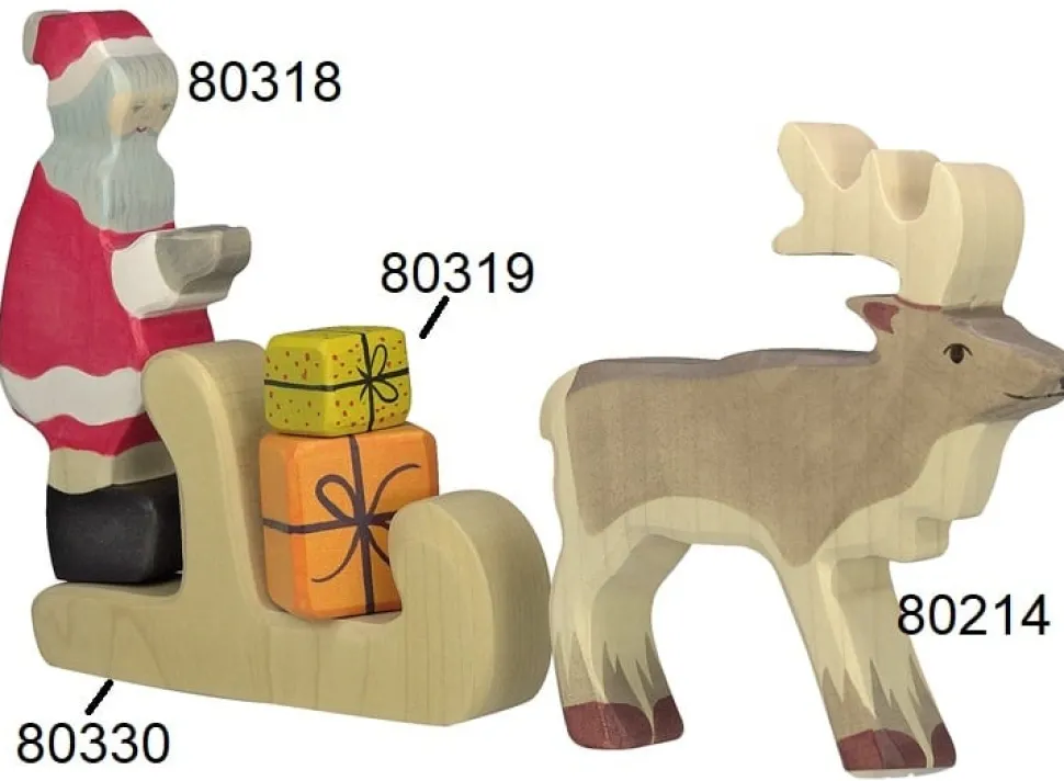 Op deze slede van Holztiger kan de kerstman zijn kadootjes meenemen die hij gaat bezorgen. De bijbehorende kadootjes, kerstman en rendier van Holztiger zijn apart verkrijgbaar in onze webshop. Hoogte: 9 cm