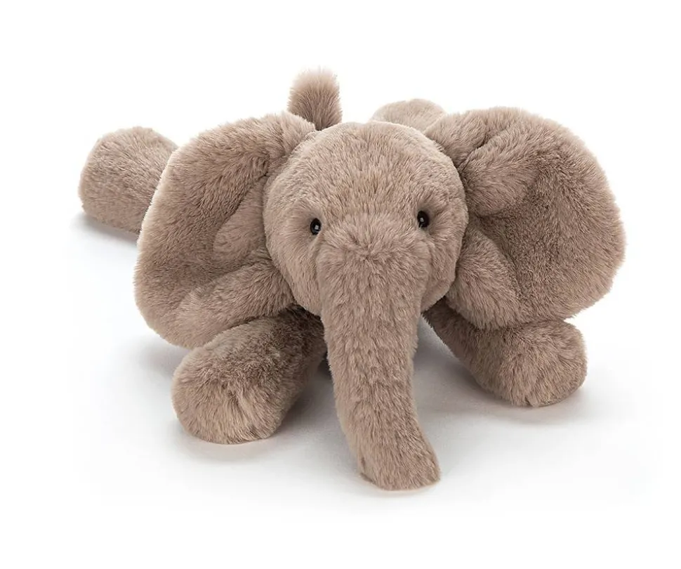 Smudge elephant houdt van lekker luieren. Deze Jellycat knuffel olifant ligt graag bij je kleintje in bed te slapen en hij wil natuurlijk altijd mee op ontdekkingstocht. Hoogte: 34 cm.