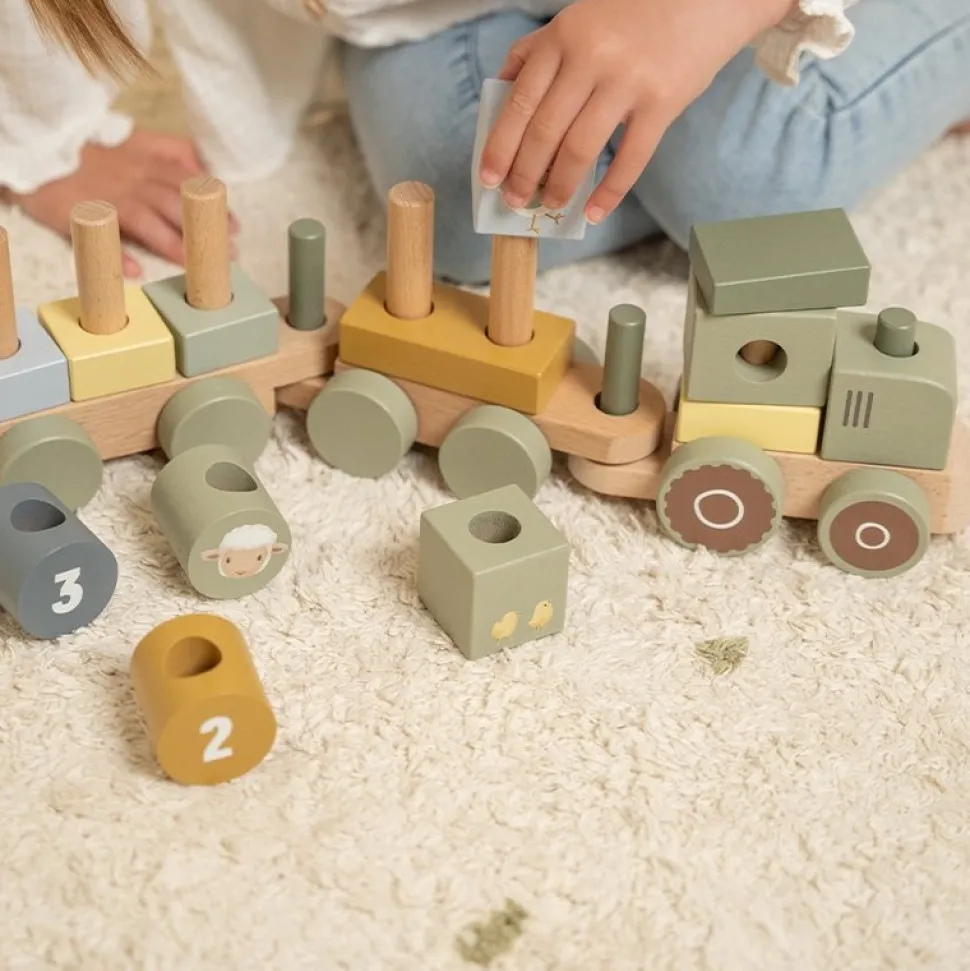 Little Dutch Blokkentrein Tractor Little Farm Hout