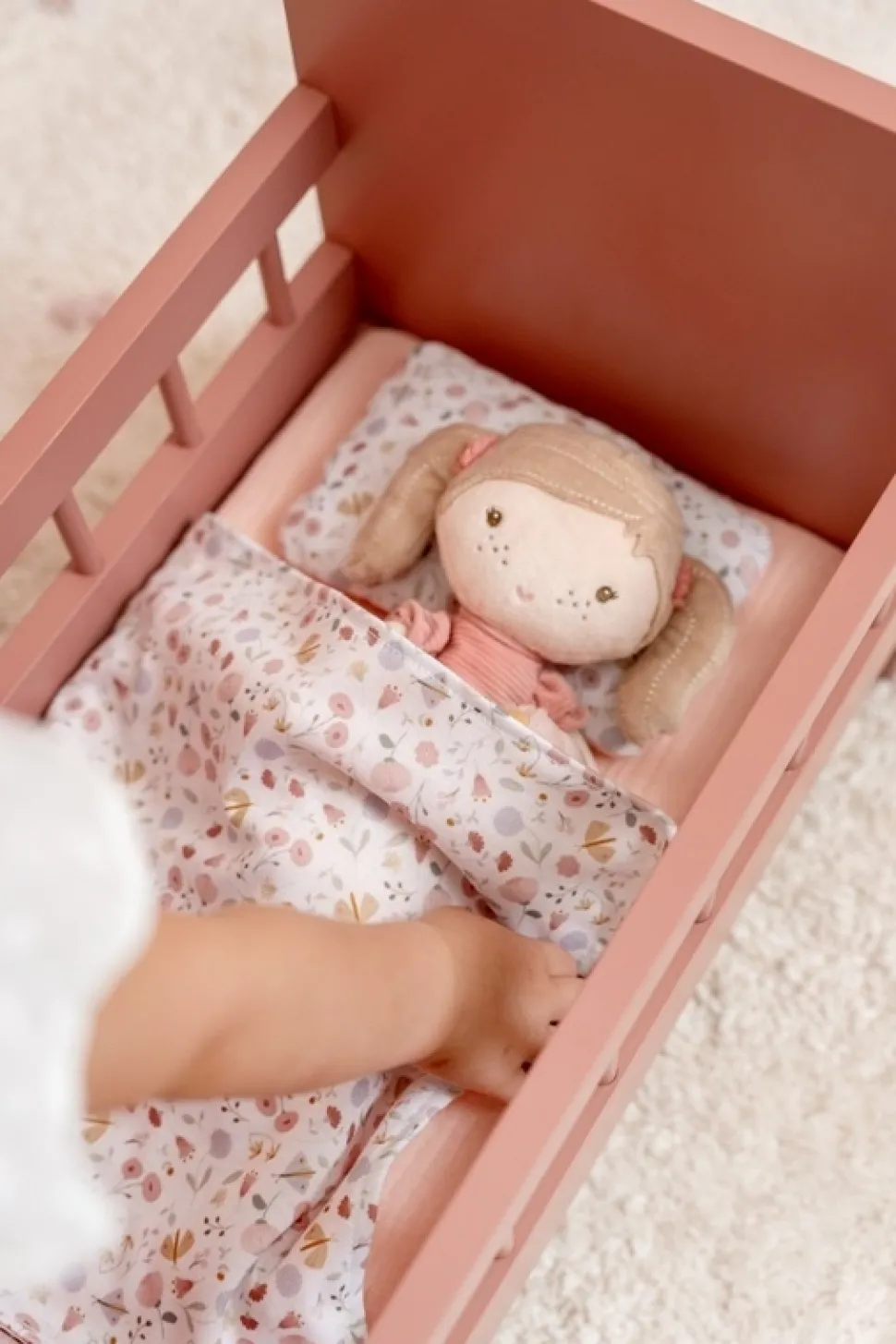 Kinderen vinden het heerlijk om hun ouders na te doen door papa of mama te spelen voor hun poppen en knuffels. Rollenspel bevordert de creativiteit en verbeelding en dit poppenbedje is perfect speelgoed om dat aan te moedigen. Het is gemaakt van stevig hout en om het extra comfortabel te maken voor de poppen wordt het geleverd met een kussen, deken en hoeslaken in het mooie Flowers & Butterflies dessin. Wordt het Anna, met bijpassend rokje van Flowers & Butterflies, Sophia of Jake die jouw kleintje zal kiezen om in dit schattige poppenbedje te slapen?