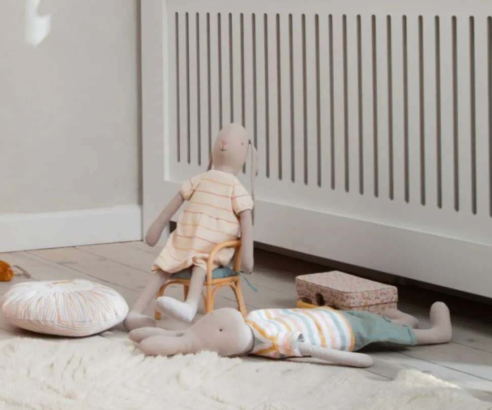 De bunny & rabbit collectie van Maileg is gemaakt van zacht natuurlijk linnen en katoen – wat een heerlijk handgevoel en uitstraling geeft. Dit konijn draagt een mooie broek en shirt.