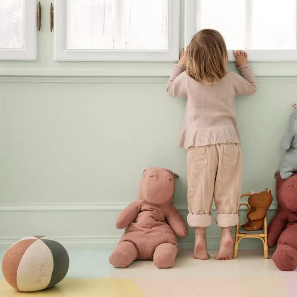 Zachte bal van Maileg gemaakt van katoen, gevuld met gerecycled polyester. Perfect om kleine handen te leren spelen.