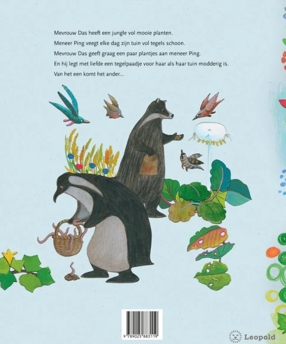 Zo keren hun tuintjes langzaam om en uiteindelijk ruilen mevrouw Das en meneer Ping van huis. Maar eigenlijk willen ze iets anders… Elkaar!