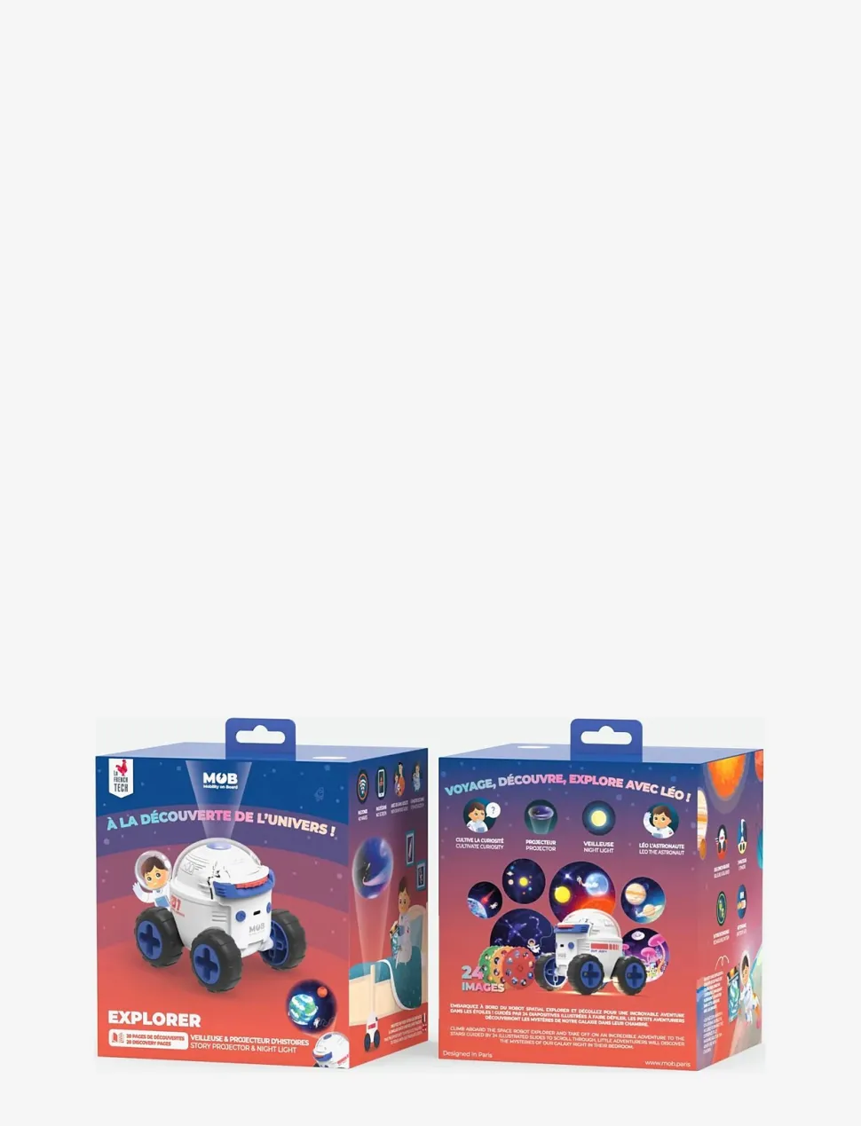 Verken de nieuwste innovatie: The Explorer! Een compacte ruimtewagen die je meeneemt op een reis naar de sterren. Laat jouw kind de mysteries van de ruimte ontdekken met de Explorer-rover, een lichtprojector met 24 geïllustreerde dia's