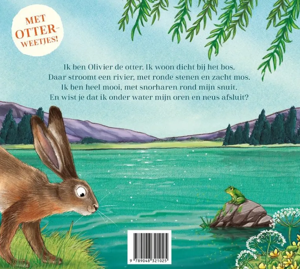 Ik ben Olivier de otter. Ik woon dicht bij het bos. Daar stroomt een rivier, met ronde stenen en zacht mos. MET OTTER-WEETJES!