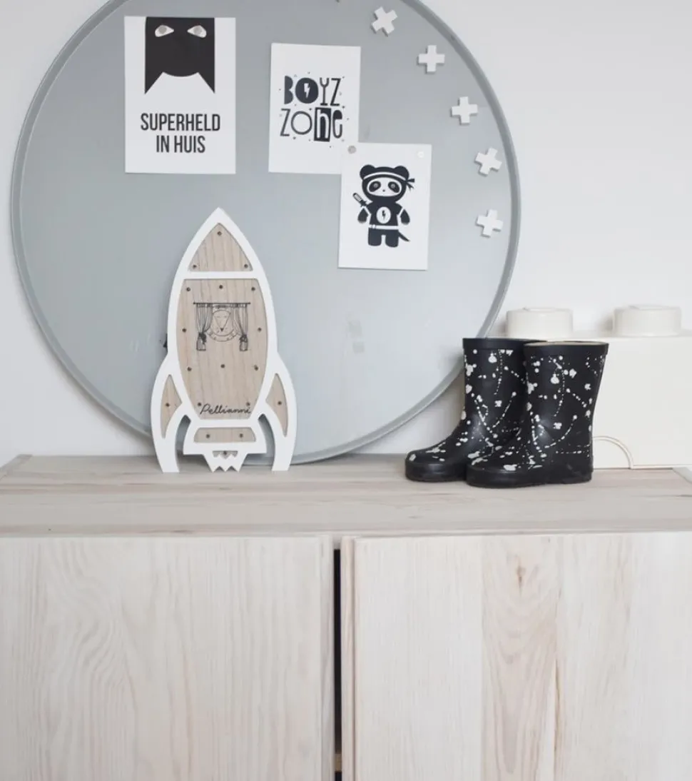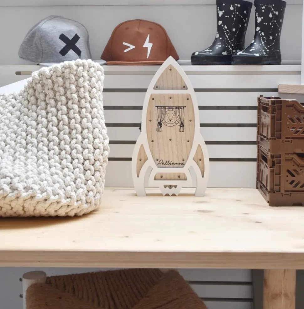 Dit lampje in de vorm van een raket van Pellianni past goed in elke kinderkamer. Het lampje is gemaakt van FSC hout waarin LED lampjes zitten. Gemakkelijk verplaatsbaar doordat het op batterijen werkt.