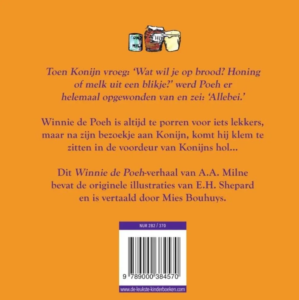 ‘Wie denkt dat Winnie de Poeh slechts een simpele teddybeer in een tekenfilm is, heeft het mis. We kunnen hartstikke veel van ’m leren.’ Happi.kids Deze prachtige gebonden uitgave bevat een hartverwarmend Winnie de Poeh-verhaal van A.A. Milne. In Poeh gaat op bezoek gaat Poeh langs bij Konijn en komt hij klem te zitten in het gat van Konijns hol. Een geweldige gelegenheid om een nieuwe generatie te laten kennismaken met de personages uit het Honderd-Bunders-Bos. Gecombineerd met de iconische illustraties van E.H. Shepard zijn deze verhalen de perfecte introductie in de wereld van Winnie de Poeh voor kinderen van 5 jaar en ouder.