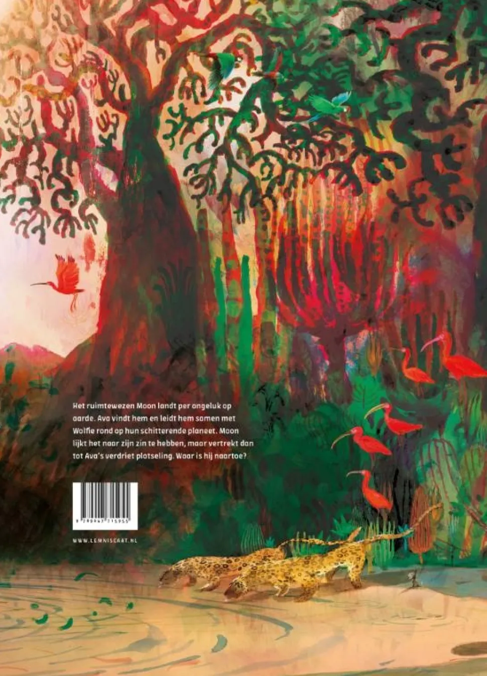 Mark Janssen laat de aarde schitteren in kleur en vorm, beweging en avontuur. Het is dan ook niet zo vreemd dat Moon, nadat hij weer vertrokken is naar zijn eigen planeet… terugkeert. Met zijn beste vriend. Om te blijven.