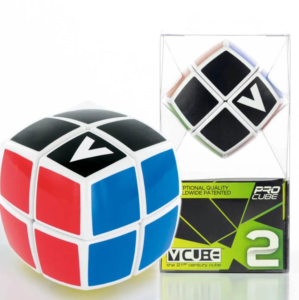 V-CUBE 2™ heeft bijna 3,7 miljoen mogelijke permutaties en weegt slechts 74g! Het bestaat uit 26 kleinere stukken, waarvan 8 de zichtbare hoeken; en het solide kruis dat ze ondersteunt, waardoor ze onafhankelijk kunnen draaien op basisassen.