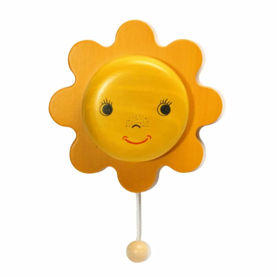 Een muziekdoosje van Weizenkorn om aan de wand te bevestigen in de vorm van een stralende zon. Als je aan de houten knop die aan het touwtje zit, trekt gaat er een mooie melodie spelen. Je kleintje zal hierbij heerlijk in slaap vallen.